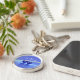 Nyckelkedja med min bild av sapphire-hjärtan flytande på vatten under en regnbåge.