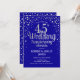 Elegant design i safirblå med falskt silvermanuskript och konfetti. Skicka meddelande om du behöver anpassat år.