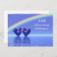 45-års silverjubileums inbjudan med en regnbåge och två blå safirhjärtan flytande på vattnet. Anpassa provtexten på baksidan med din egen information för ditt evenemang.