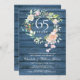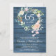 Med en delikat akvarellblomma grönska krans på blå rustika träpaneler, kan denna eleganta botaniska 45:e eller 65:e safirbröllops inbjudan anpassas med din speciella bröllopsinformation. Baksidan har en matchande blomsterkrans som ramar in dina bröllopsdatum i elegant typografi på en blå rustik träpanel bakgrund. Designad av Thisisnotme©