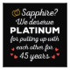 Utformning av roligten, perfekt för alla som varit gifta i 45 år och en förnyelseceremoni i bröllop. Det gör en underbar matchningsutrustning för par! Sapphire? Vi förtjänar Platinum för att ha stått ut med varandra i 45 års citat för ett par som har gifte sig för 45 år sedan eller ett par som förnyar bröllop vows på sin safiannappalag. Är du en romantisk make eller fru? Förstärka stil med den här konsten! Underbar gåva till din vän som har gifte sig med för 45 år sedan, make eller hustru för 45 år sedan, eller pappa och mamma för att fira deras 45:e bröllop-årsdag.