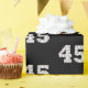 45:e födelsedagsfesten med fet svart och vitt lycklig och nummer 45 med svart med party-ballongbukett. Den svarta bakgrunden färg kan ändras.