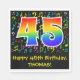 Den här roligten, en levande och färgstark papper napkin-design för födelsedag har ett stort nummer "45" med en regnbågsspektralgradient som inspirerade mönster, tillsammans med meddelandet "45:e födelsedagen i Lycklig" och en personlig namn. En del av bakgrunden har ett färglöst musik noter och symbolerna mönster. Roligt, anpassad födelsedagskalas pappra blöjor av detta slag kan användas vid en musikers, en sångares, en kompositörs eller någon annans 45-årsfirande. [~Z0000421]