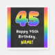 Den här roliga och spännande pappra napkin-designen med födelsedagstext har ett stort nummer "45", med ett dynamiskt regnbågsspektrum som inspirerar gradienten mönster, tillsammans med meddelandet "Lycklig 45:e födelsedagen", och en redigerbar mottagare namn. Pappra blöjor av det här slaget kan användas vid party i firande på någons 45-årsdag. [~Z0000629]