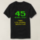 Den här roligten och den här skjortan har meddelandet "45 ÅRS GAMLA!", födelsedagsmeddelandet hälsning "Lycklig 45:e födelsedag" och ett redigerbart namn. I de övre åldersgränserna och i texten finns ett geeky, pixelformat, grönt, 8-bitars grafik stil-utseende som inspirerats av vintagens dataspel och retrovideospel. Det undre hälsning-budskapet har ett nyktert, gult, vintage och digitalt datorsystem som inspirerats av ett nyktert utseende. Sådana skjortor kan bäras av deltagarna i en födelsedagsfest som hålls i firande på 45-årsdagen av någon som tycker om vintage videospel eller gamla datorer. [~Z0000455]