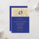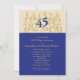 Modern och iögonfallande bröllopsjubileums inbjudan. Perfekt för att fira 45-års bröllopsjubileum med stil. Funktioner ett stort nummer 45 i safirfärg, som är den traditionella färgen för denna årsdag. Andra siffror visas i en ljusare färg för att symbolisera de år som gått. Perfekt inbjudan för att fira denna milstolpe på hemmet, i en restaurang eller favoritplats. Tidlös och klassisk design. Lägg till din egen formulering.