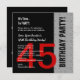 45th Födelsedag eller någon röd silversvart C846C Inbjudningar