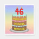 Den glatta och roliga pappra napkindesignen med födelsedagskalemat har en bild av tecknad-stil med en treskiktstårskalkårkaka med numeriskt formade ljus ovanpå som visar siffran "46", tillsammans med meddelandet "LYCKLIG 46TH BIRTHDAY", och en mottagare av anpassade namn. Bakgrunden har ett monteringsspektrum för pastellregnbåge med flera färg inspirerad gradient mönster. Pappra servetter som dessa kan användas i party för någon som firar sin 46-årsdag. [~Z0000623]