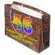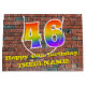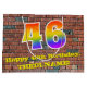 Denna pulserande och roligt födelsedag med presentsäck, inspirerad av gatukonst och graffiti, har ett stort nummer "46" med en regnbågsspektrumövertoning inspirerad mönster, tillsammans med meddelandet "Lycklig 46:e födelsedag" och ett anpassade namn. Bakgrunden har en tegelvägg stil mönster. En färgfull matsäck i julklapp som den här kan vara ett roligt sätt att figurera en gåva eller gåva som ges till någon som firar sin 46-årsdag. [~Z0000522]