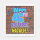 Den här roligtens pappra napkin-design med födelsedagskalemat visar LYCKLIG 46:e BIRTHDAY, med ett färgstarkt, dynamiskt, urbant gatukonst och graffiti-inspirerat utseende, tillsammans med en anpassningsbar mottagare namn. Bakgrunden har en tegelvägg som inspirerat mönster. Pappra servetter som denna kan användas i party för någon som firar sin fyrtiosjätte födelsedag. [~Z0000534]