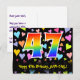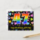 Framsidan av denna roliga och spännande födelsedagskortdesign har en stor siffra "47" med ett mönster inspirerat av regnbågens färger. Den har också texten "Grattis på 47-årsdagen" och ett anpassat mottagarnamn. Framsidan har dessutom ett livfullt och färgglatt mönster av kärleksfulla hjärtan. Baksidan har ett anpassningsbart gratulationsmeddelande för födelsedagen, eller kan rensas och lämnas tom om ett meddelande ska skrivas för hand istället. Ett anpassningsbart födelsedagskort som detta kan vara ett roligt sätt att skicka ett meddelande för att fira någon som fyller fyrtiosju år. Postkort som detta kan också användas för att bjuda in gäster till en födelsedagsfest eller firande som hålls för någon