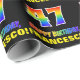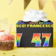 Denna glädjande, färgstarka och pappra roligt-design har ett stort nummer "47" och meddelandet "GRATTIS PÅ FÖDELSEDAGEN", som båda har en regnbågsspektrumövertoning som inspirerade mönster, tillsammans med en fet gult-anpassningsbar-mottagare namn. Bakgrunden är svart på färgad. Roligtens födelsedag som är papper som detta kan användas för att figurera en gåva eller present som ges för att fira någons fyrtiosjunde födelsedag. [~Z0000475]