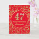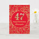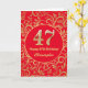 47:e födelsedag Röda och Guld-Blommönstret Kort