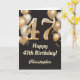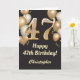 47:e födelsedagen Black and Guld Balloons Confetti Kort