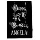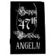 Den här opulenta och utförliga födelsedagstexten för presentsäcksdesignen innehåller meddelandet "Lycklig 47:e födelsedag" i lyxskript stil, på en svart färgad. Det innehåller också en mottagare av anpassade namn. En sådan här lavish födelsedagsäck kan vara ett respektabelt sätt att figurera en gåva eller present som ges till någon som firar sin 47-årsdag. [~Z0000557]