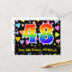 Framsidan av denna färgglada, roliga och spännande födelsedagsteman postkortsdesign har en stor siffra "48" med ett regnbågsspektrum-gradering inspirerat mönster, tillsammans med meddelandet "Grattis på 48-årsdagen", och ett personligt mottagarnamn. Framsidan har dessutom ett färgglatt och livfullt mönster av kärleksfulla hjärtan. Baksidan har ett redigerbart födelsedagsmeddelande, eller kan raderas och lämnas tomt om ett meddelande ska skrivas för hand istället. Ett anpassningsbart födelsedagskort som detta kan vara ett roligt sätt att skicka ett meddelande för att fira någon som fyller fyrtioåtta. Postkort som detta kan också användas för att inbjuda gäster till en födelsedagsfest eller kal