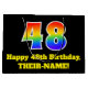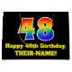Denna pulserande och roligt födelsedag med presentväskan har ett stort nummer "48" med en regnbågsspektrumövertoning som inspirerade mönster, tillsammans med meddelandet "Lycklig 48:e födelsedag" och ett anpassade namn. Den har också en bakgrund med svart färgad. En matad presentsäck som den här kan vara ett roligt sätt att slå ihop en gåva eller present som ges till någon som firar sin 48-årsdag. [~Z0000521]