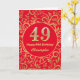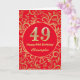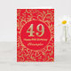 49:e födelsedag Röda och Guld-Blommönstret Kort