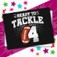 Denna amerikanska fotbollens födelsedagsdesign är perfekt för en 4-års födelsedagstema för en fotbollsfest för att fira att man fyller 4 år! Innehåller 'Redo att Tackla 4' 4:e födelsedagens fotbollscitat med amerikansk fotbolls-grafik. Perfekt för alla som älskar amerikansk fotboll och som fyller 4 år!
