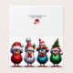 4 birds in a row with christmas hats
