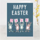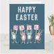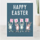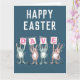 Påskkort till någon med ett 4-bokstavsnamn. Roligt påskkort med illustration av kaniner i rosa och blått. Kaninerna håller upp kort för att stava namnet.