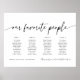Minimalistiskt sittdiagram i Bröllop Våra favoriter för 30-40 gäster (8-10 personer vid ett bord). En elegant i svartvitt eller valfritt färg i bakgrunden. Klicka bara på den anpassade länken, som visas under textanpassning på högerna, och välj anpassningsbarnas bakgrund färg. Med den här mallen för poster av tecken kan du snabbt och enkelt skapa bedövande tillägg till din bröllop-dekoration. Tecken kan minskas, det finns många storlekar att välja mellan samt alternativ för anpassningsbarnas ramning och projektion.