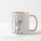 Roligt Rabbit Design Mugg för någon med 4 Brev Namn. Exempel: namn är Dave. Cute baby-kaniner. Roligtens rosa, grått och vita mugg med illustration av kaniner i rosa och blått. Kaninerna håller upp kort för att stava ut namn.