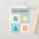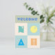 Fyra grattis kort brev namn för ett nyfött baby och dess föräldrar i neutralt klistrar in ljusblått grönt beige färg. De fyra breven är anpassadet som anpassar sig till barnen namn. Brev väljs i ett sött teckensnitt så att det ser barnsligt ut. Färg kan redigeras enligt enskilda önskemål.