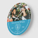Enkel kontur av pulseffekt konturlinje grafik blå topaz och vit lägger till din egen fotoårstid för fjorton Bröllop. Anpassa med din årsdag parets namn, bröllop-år och årsdag, plus ett landskapsfoto av ditt årsjubileum. Den fjärde bröllop-årsdagen är förknippad med den blå gemenstäckningen och hjärtat symboliserar kärlek. Grafik och design av Sarah Trett för www.mylittleeden.com och www.mylittleedenweddings.com på Zazzle.