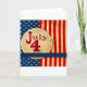Firar den 4:e juli med den här lysande designen från 4:e juli på en amerikansk Flagga. Den här designen har den 4:e juli i ord i en cirkel ovanpå en amerikansk flagga och ser ut att vara effektiv i verkligen. Den 4:e amerikanska flagga i juli ser underbar ut på de här hälsningskorten