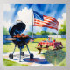 Få redo för en fest med den här livliga 4 juli-poster! Vattenfärgen stil ger liv åt en bakgård med BBQ-läge med ett kolkraftverk som är laddat med giftiga burgare och hett hundar. En rödkontrollerad picnic bord väntar, och det amerikanska flagga vinkarare under en solig sommar himmel. Fetstilen "4:e juli 2010" i Firande i rött, vitt och blått teckensnitt ökar den festila atmosfären. Den här designen på 1 600 x 1 600 px är perfekt för att bjuda in gäster eller bara spränga ditt utrymme för helgdag!