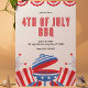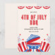 Skjut upp grillen och få redo att fira Independence day i stil med detta festliga och anpassade 4:e juli-inbjudan. Utformningen har fet röd och blå färg, som fångar den amerikanska patriotismens innersta väsen. Överdelen är adorberad med klassisk buntning, med en liten bit traditionell charm, medan grund visar en roligt som illustrerar ett BBQ-grill och flaggor, och anger perfekten för en sommarkaka. Inbjudan är tydlig och djärv som inbjudningarna dina gäster att gå med i roligten. Med anpassadet fält kan du anpassa information om datum, tid, plats och OSA och se till att all viktig information är anpassad till din händelse. Perfekt för en familjemöte eller ett party i grannskapet. Den här 4:e juli-inbjudan garanterar att du minns firande.