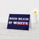 Röd, blå och vit, skriven i USA:s flagga färg. Särskilt för Independence day i andra dagar också.