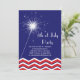 En roligt röd, vit och blå 4:e juli-inbjudan med chevoner och gnistor. Den här inbjudan kan enkelt anpassas för en företagshändelse. Kontakta oss på prettyfancyinvites@gmail.com om du behöver hjälp med det.