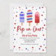Vattentärsfärgad röd vit och blå ispropp på Över 4:e juli party inbjudan.