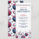 Stars och stripes inspirerade till en inbjudan till en fjärde juli-barbecue party med illustrationer av fotbollar, basebollar och basketbollar.