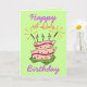 4:E JULY GRATTIS PÅ FÖDELSEDAGEN Fireworks Cake CandlesCard. LYCKLIG 4 JULI BIRTHDAY är ordalydelsen. I mitten, en sikthaltig tårta, med fyrverkeripjäser som roliga ljus, kostym firande på både en födelsedag och helgdag. Den färgstarka formuleringen på ljust grönt bakgrund är ljus och roligt. Inuti kortet, står det på märkrn att ha en UNDERBAR FIRANDE.