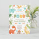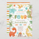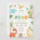 4 fjärde Födelsedagsfesten 4e födelsedagen TRex Inbjudningar
