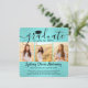 Dela glädjen av en gymnasie- eller högskoleexamen med dessa fyrkantiga anpassade 4-foto-kollage i tealblå och svarta meddelanden. Alla bilder och texter är enkla att anpassa. (TIP FÖR BILDPLACERING: Ett enkelt sätt att centrera en bild exakt som du vill är att beskära den innan du laddar upp den till Zazzle-webbplatsen.) Denna mall kan anpassas med valfri information, till exempel information om festinbjudan, föräldrarnas namn, särskilda utmärkelser, examensinriktning, favoritcitat, examenens kontaktinformation, framtida utbildningsplaner eller nytt jobb. Designen har en turkos/tealblå bakgrund i falskt borstat folie, svart studentmössa, handskriven typsnittskalligrafi, modern minimalistisk typografi och fyra bilder som du väljer, till exempel seniorbilder eller bilder från examensceremonin. Observera att tealblått är tryckt färg, inte metalliskt folie. Dessa eleganta examensmeddelanden är ett trendigt och snyggt sätt att dela din
