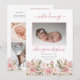 Söt flicka blek rosa blommigt vattenfärgsbuketter fyra fotokollage tvåsidigt födelsemeddelande. Lägg bara till dina värdefulla baby-foton och detaljer för att slutföra den här designen. Sammansatt design efter Helgdag Hearts-design (reserverade höger).
