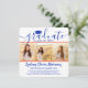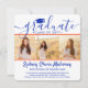 Dela glädjen av en gymnasie- eller högskoleexamen med dessa fyrkantiga anpassade 4-foto-kollage i orange och blå färger. Alla bilder och texter är enkla att anpassa. (TIP: Ett enkelt sätt att centrera ett foto exakt som du vill är att beskära det innan du laddar upp det till Zazzle-webbplatsen.) Denna mall kan anpassas med valfri information, såsom inbjudan till fest, föräldrarnas namn, särskilda utmärkelser, examensinriktning, favoritcitat, kontaktinformation, framtida utbildningsplaner eller nytt jobb. Designen har en enkel vit bakgrund, blå studentmössa, handskriven typsnitt, modern minimalistisk typografi och fyra bilder som du väljer, till exempel seniorbilder eller bilder från examensceremonin. Dessa eleganta examensannonser är ett trendigt och snyggt sätt att dela din speciella dag med familj och vänner. Grattis till examen!