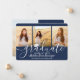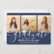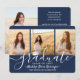 Dela glädjen av en gymnasie- eller högskoleexamen med dessa anpassade fyrfotosammanställningar i marinblå och vita kungörelser. Alla bilder och texter är enkla att anpassa. (TIP: Ett enkelt sätt att centrera ett foto exakt som du vill är att beskära det innan du laddar upp det till Zazzle-webbplatsen.) Denna mall kan anpassas med valfri information, till exempel information om festinbjudan, föräldrar namn, särskilda utmärkelser, examina, favoritcitat, kontaktinformation, framtida utbildningsplaner eller nytt jobb. Designen har en mörkblå bakgrund, vit studentmössa, handskriven typsnittskalligrafi, modern minimalistisk typografi och fyra bilder som du väljer, till exempel seniorsbilder eller bilder från examensceremonin. Dessa eleganta examensannonser är ett trendigt och snyggt sätt att dela din speciella dags firande med familj och vänner. Grattis till examen!