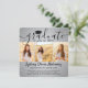 Dela glädjen av en gymnasie- eller högskoleexamen med dessa fyrkantiga svarta och silverfärgade personliga fyrfotosammanställningar. Alla bilder och texter är enkla att anpassa. (TIP: Ett enkelt sätt att centrera en bild exakt som du vill är att beskära den innan du laddar upp den till Zazzle-webbplatsen.) Denna mall kan anpassas med valfri information, till exempel information om festinbjudan, föräldrarnas namn, särskilda utmärkelser, examensinriktning, favoritcitat, kontaktinformation, framtida utbildningsplaner eller nytt jobb. Designen har en silvergrå bakgrund, svart studentmössa, handskriven typsnitt, modern minimalistisk typografi och fyra bilder som du väljer, till exempel studentfoton eller bilder från examensceremonin. Observera att silver är tryckt färg, inte metallfolie. Dessa eleganta examensannonser är ett trendigt och snyggt sätt att dela din speciella dag med familj och vänner. Grattis till examen!