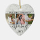 Fira den nyaste familjemedlemmens värdefulla gåva med en snyggt med fyra fotokollage hjärtformade keramiska prydnadsämnen. Könsneutral design med faux marble gräns är lämplig för en pojke eller flicka från nyfödd bebis. Formuleringar och bilder på den här mallen är enkla att anpassa. (IMAGE PLACEMENT TIP: Ett enkelt sätt att centrera ett foto exakt som du vill är att flytta det till skörd innan du laddar upp det till Zazzle-webbplatsen.) Idéer för bilder skulle kunna vara ultraljud, sonogram, nya föräldrar eller mor för att vara foton från moderskap eller bilder av baby eller en leksak. Namn, år, slutdatum och "Vår första julförväntning"-citat är lätt att ändra i fodral, det behövs för ett annat tillfälle. Utformningen har en vit faux marble gräns, snyggt handskrivet manusgrafi, modern minimal skrivmaskin stil-typografi och fyra foton efter eget val. Detta unika meddelande om gravid ger en elegant till de förväntade föräldrarnas eller far- och morföräldrarnas dekorationer i Julafton.