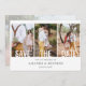 de trevliga nyheterna om förlovningen och fyra foton med dessa elegant bröllop sparar inbjudan till platta datumkort. Alla foton och all text är enkla att anpassa. (IMAGE PLACEMENT TIP: Ett enkelt sätt att centrera ett foto exakt som du vill är att flytta det till skörd innan du laddar upp det till Zazzle-webbplatsen.) Utformningen har modern minimalistisk typografi och 4 av din anpassningsbar bilder (3 framtill och 1 på baksidan). Det här unika meddelandekortet för förlovning är ett elegant för att informera vänner och familj och ge dem om dina kommande speciella dagar i firande.