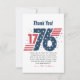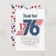 Visa din uppskattning med patriotiskt fläkt med hjälp av det här 4:e juli 1776, tack för ditt kort Independence day! Det är perfekt att tacka gästerna efter helgdag BBQ, fyrverkeripjäser party eller firande med fet röd, vit och blå design med stjärnor och vintage amerikansk charm. Det här kortet är enkelt att anpassa med ditt meddelande och ger en tankfull beröring till evenemanget. Fira frihet och tacksamhet med stil och en gnista av Amerikana!