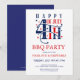4 juli grillfest och fyrverkeri fest inbjudan med modern typografi. Den är isolerad på en vit bakgrund, utformad för den amerikanska självständighetsdagen firande. Typografin kan anpassas i rött och blått.