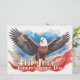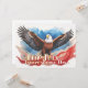 Kraftfull grafik med örn med utdraget vingar och dynamiskt rött, vitt och blått inslag - symbolisk patriotisk design för Independence day.