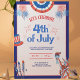 Gå med festligheterna med denna pulserande och anpassade 4:e juli-inbjudan till Firande. Designad för att fånga Independence day anda, är inbjudan perfekt för en sammankomst med vänner och familj. Utformningen har ett patriotiskt tema med rött, vitt och blått accenter, fyrverkeriillustrationer och ikoniska amerikanska symboler som Frihetsgudinnan och farbror Sams hatt. Den djärva och lekfulla typografin lägger till en roligt, skapar den inbjudan och festen. Det som gör denna inbjudan speciell är dess personlighetsdugliga natur. Du kan enkelt anpassa detaljerna, t.ex. datum, tid, plats och OSA, och se till att gästerna har all information som krävs för firande. Perfekt för en Independence day party, barbecue- eller fyrverkerivisningshändelse anger den här inbjudan tonen för en minnesvärd sammankomst.