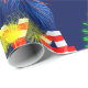 Fyrverkerier med färg och JULY4 som amerikansk flagga. Bara en vacker papper. Patriotisk Fjärde juli i Independence day ger och souvenirer åt vem som helst.